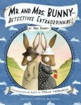 Mr. and Mrs. Bunny–Detectives Extraordinaire! translated from the Rabbit by Polly Horvath and illustrated by Sophie Blackall. The devil is in the details in this exceptionally witty chapter book by National Book Award winner Polly Horvath. (To be fair, the knack for clever satire belongs to Mrs. Bunny. Horvath is merely the messenger, but for the purposes of this review, I’ll refer to her as the author.) Its tai . . . hmph . . . tale follows a playful premise: Fifth-grader Madeline’s hippie-dippie (human) parents have disappeared. Unbeknownst to Madeline, they’ve been kidnapped by a skulk of foxes bent on discovering the top-secret whereabouts of Madeline’s uncle Runyon, a kooky scientist who deciphers codes for the Canadian government. His services are desperately needed in order to help the foxes translate a box of recipes penned in mysterious squiggles by the newly deceased Fanny Fox in time for the grand-opening of Fanny Fox’s Canned Rabbit Products and By-Products factory. The pure-hearted but supremely spacey Mildred and Flo—Madeline’s parents—won’t cough up the information, and therein lies the rub.